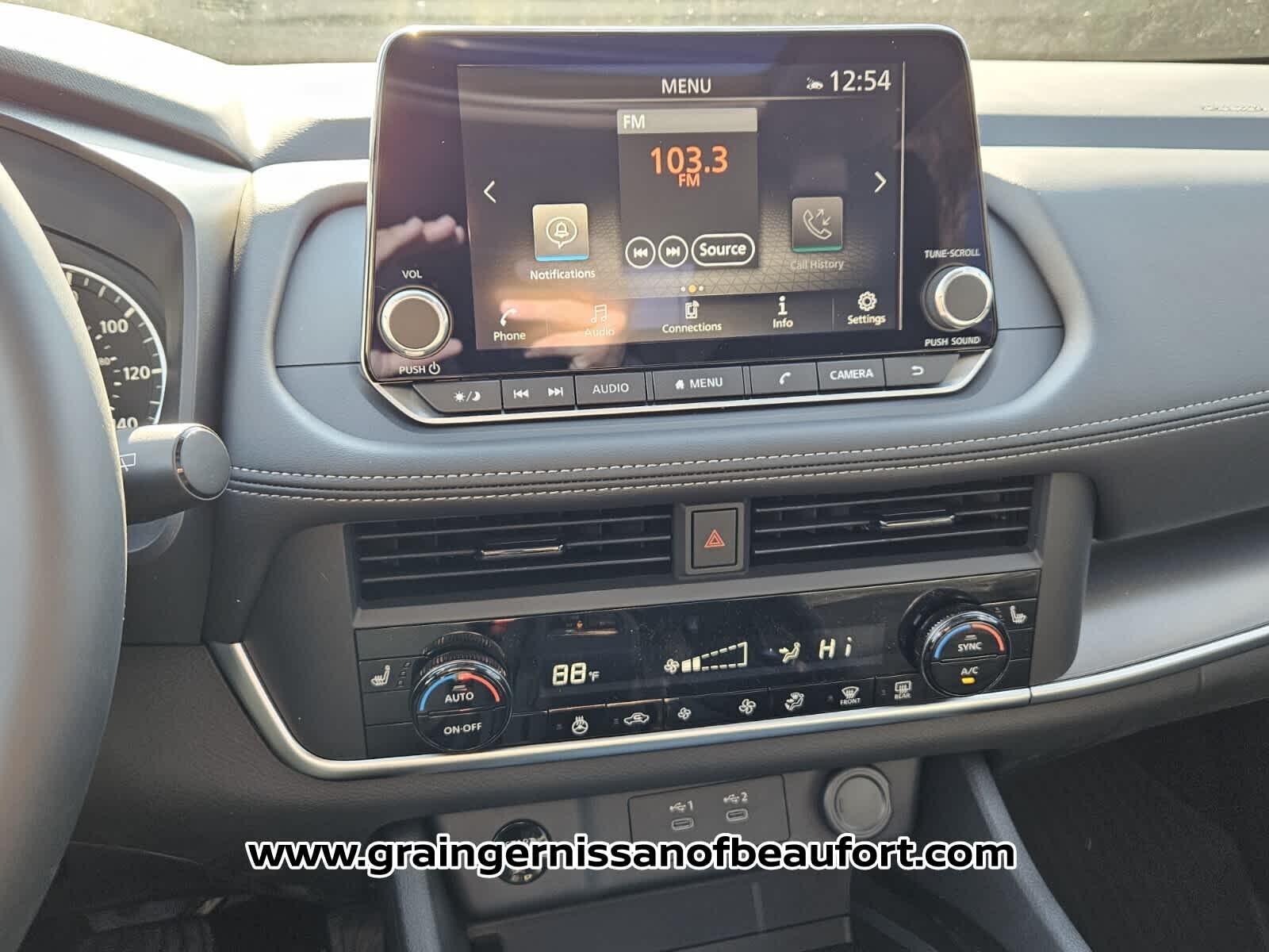 - Radio: AM/FM NissanConnect -inc: 6 speakers plus 2 tweeters, Apple CarPlay, Android Auto, 8" color touch screen display, Bluetooth®, 2 front USB type-C, Wi-Fi hotspot and NissanConnect Services powered by SiriusXM