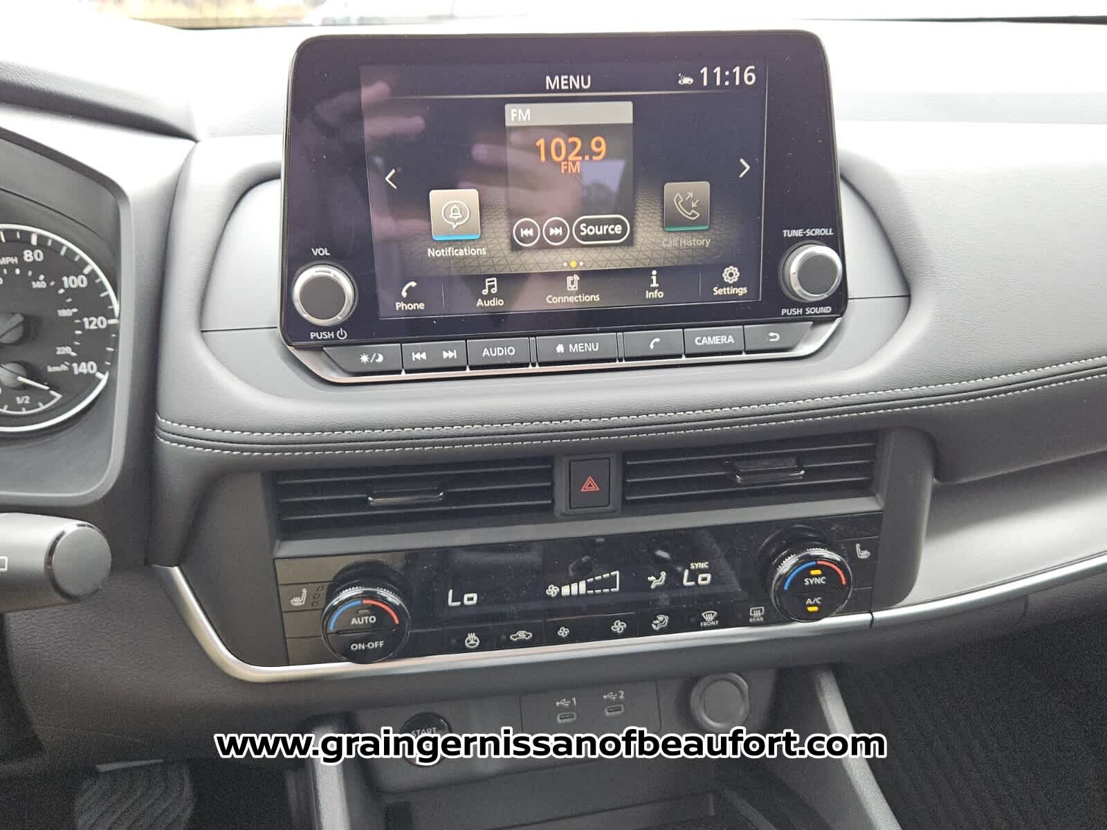 - Radio: AM/FM NissanConnect -inc: 6 speakers plus 2 tweeters, Apple CarPlay, Android Auto, 8" color touch screen display, Bluetooth®, 2 front USB type-C, Wi-Fi hotspot and NissanConnect Services powered by SiriusXM