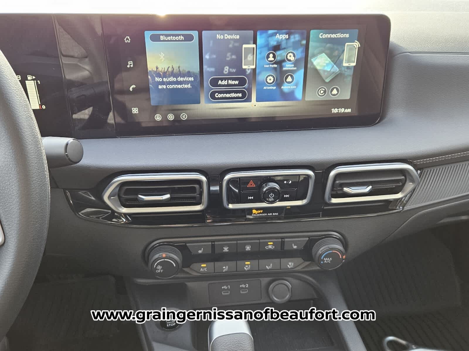 - Radio: AM/FM w/RDS/MP3 -inc: 4 speakers, 12.3" NissanConnect multimedia center display, Bluetooth® hands-free phone system, streaming audio via Bluetooth®, hands-free text messaging assistant, Siri Eyes Free, Google Assistant voice recognition, Apple CarPlay, Android Auto and (2) front USB connection port (type C)